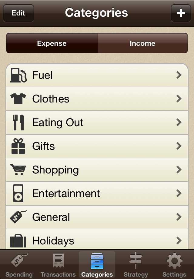 From the Budgets screen, you can add one or more Budgets that you would like to Track. For example, you may want to set up one Budget for 'Shopping', one for 'Clothes' and another for 'Eating Out'.