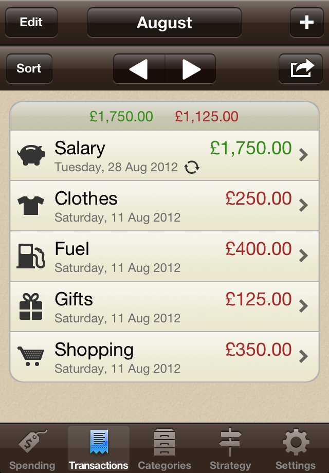 The concept is simple: set up your Budgets for Shopping, Food, Entertainment and so on. Then enter your spending as it happens. The app then tracks your Budgets for you. This way you will soon get your Budgets under control and therefore save money.